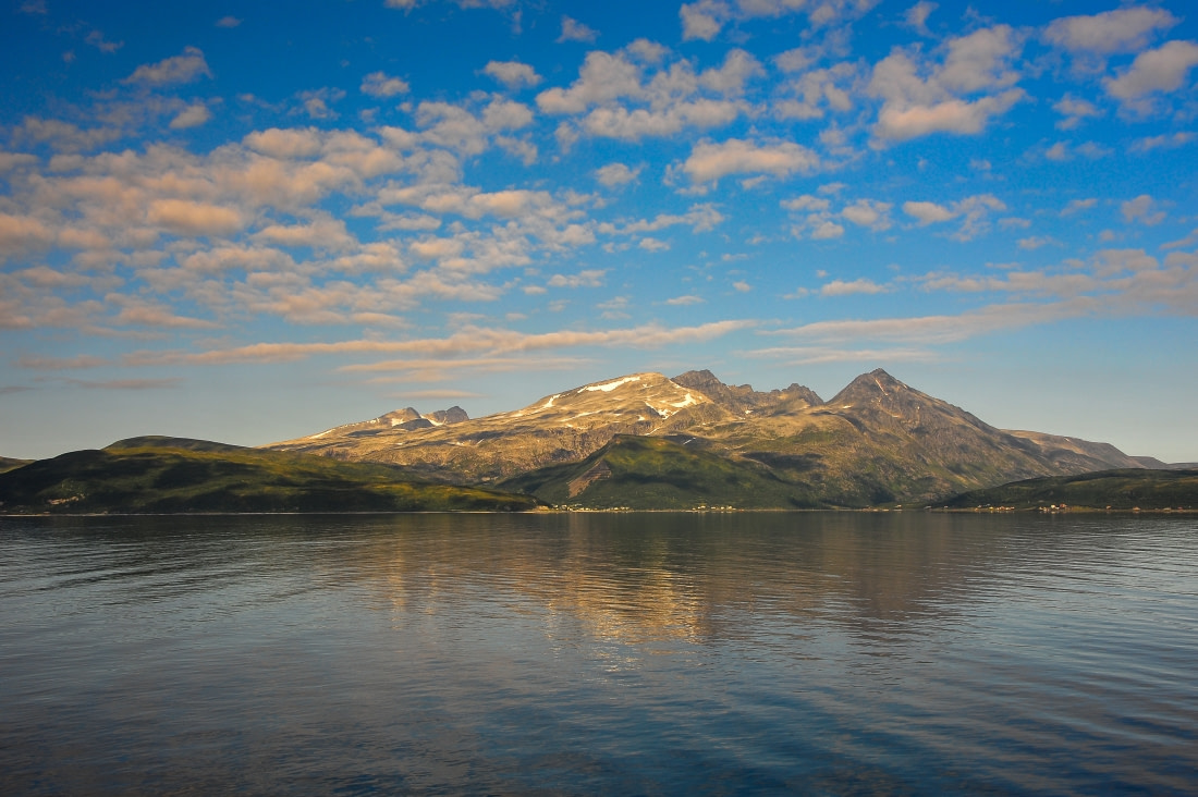 The fjords of Kvæfjorden, Godfjorden, and Vågsfjorden branch off Andfjorden, extending this beautiful and whale-abundant region. Andfjorden lies on the border of Troms and Nordland counties, and the islands of Krøttøya, Grytøya, and Bjarkøya are located within it. Also, the settlements of Tranøy, Kvæfjord, and Harstad lie along Andfjorden’s banks.