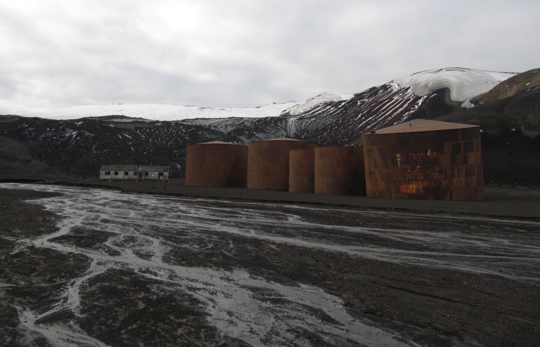 Bleached whale bones, wooden barrels, and other artifacts from 20th-century whaling remain in the Norwegian whaling compound of Whalers Bay, along with old buildings from a British scientific station evacuated after a 1969 eruption. Though the wildlife inside the caldera is not terribly abundant, several bird species breed on the caldera cliffs.