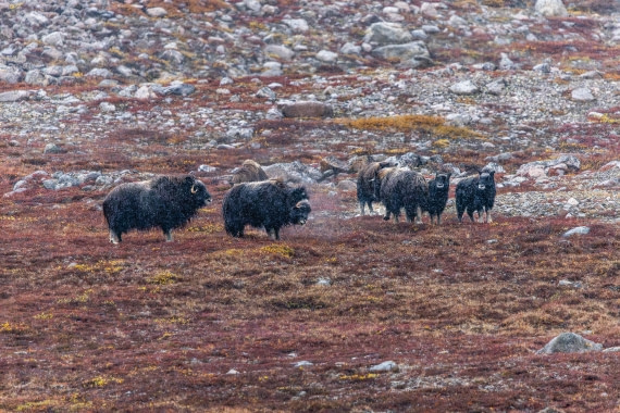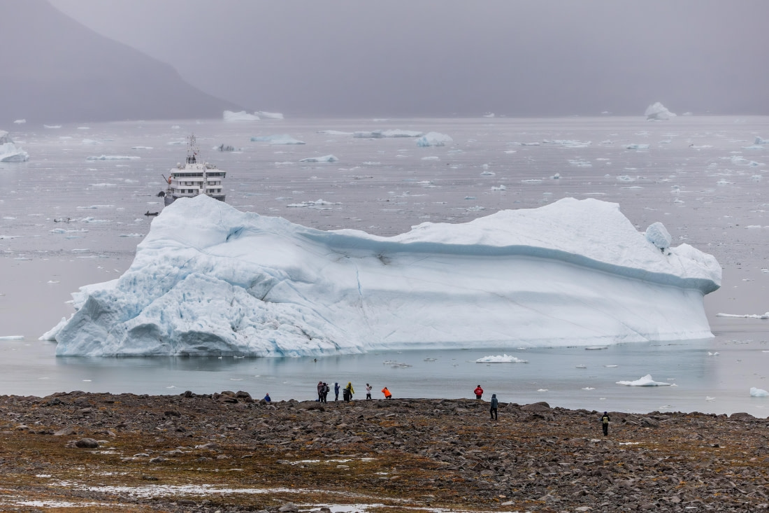 By 08:30, the first group of hikers was off — loaded into Zodiacs and ferried ashore to begin a 6-7-hour trek through the rugged terrain of Harefjord. They crossed tundra patches, climbed ridgelines, and walked in the shadow of the Inland Ice. Along the way, they spotted signs of muskoxen, startled Arctic hares, and paused often — not from exhaustion, but from awe.