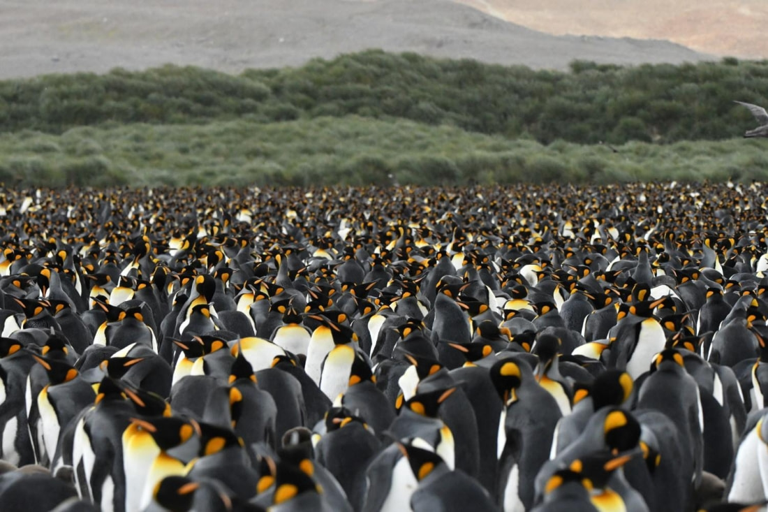 King Penguins form gigantic colonies when they come in to shore during the mating season. One colony on South Georgia is estimated to have over 200,000 birds.