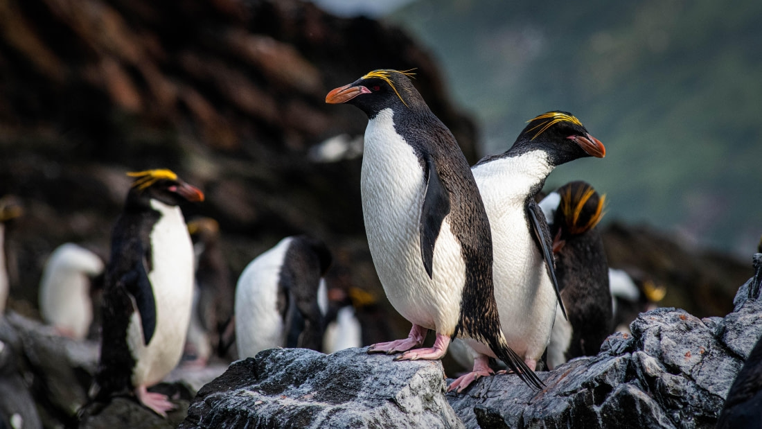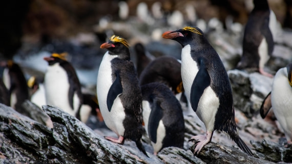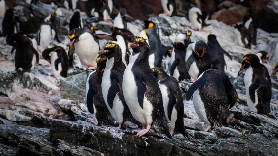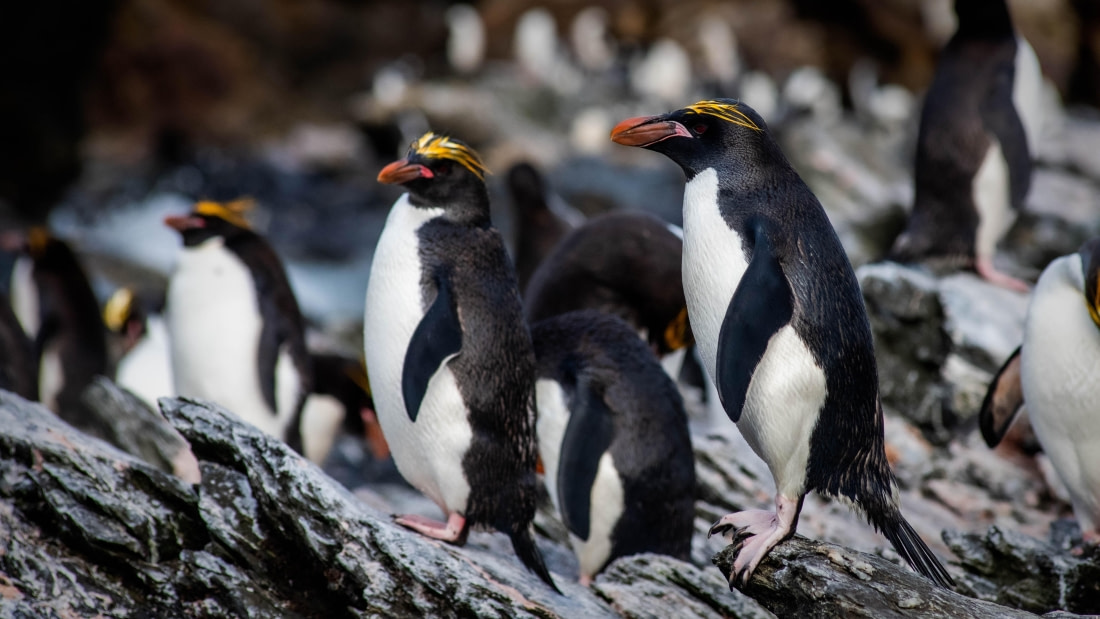 Macaroni penguins are the most numerous species of penguin, estimated at nine million breeding pairs however, some populations, have experienced at least a 50% decline in the last four decades, most likely due to warming seas and pollution.