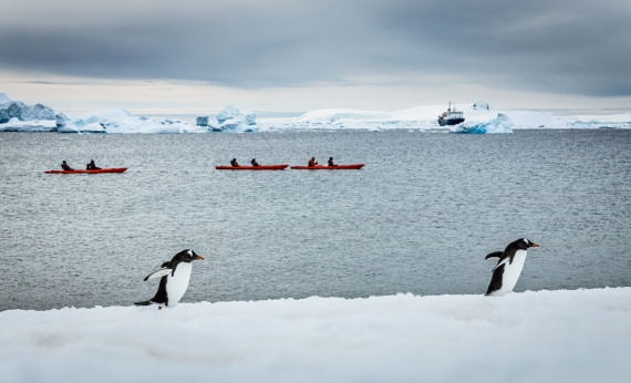 The Antarctic Peninsula Basecamp cruise offers you a myriad of ways to explore and enjoy the Antarctic Region. This expedition allows you to hike, snowshoe, kayak, go mountaineering, and even camp out under the Southern Polar skies.