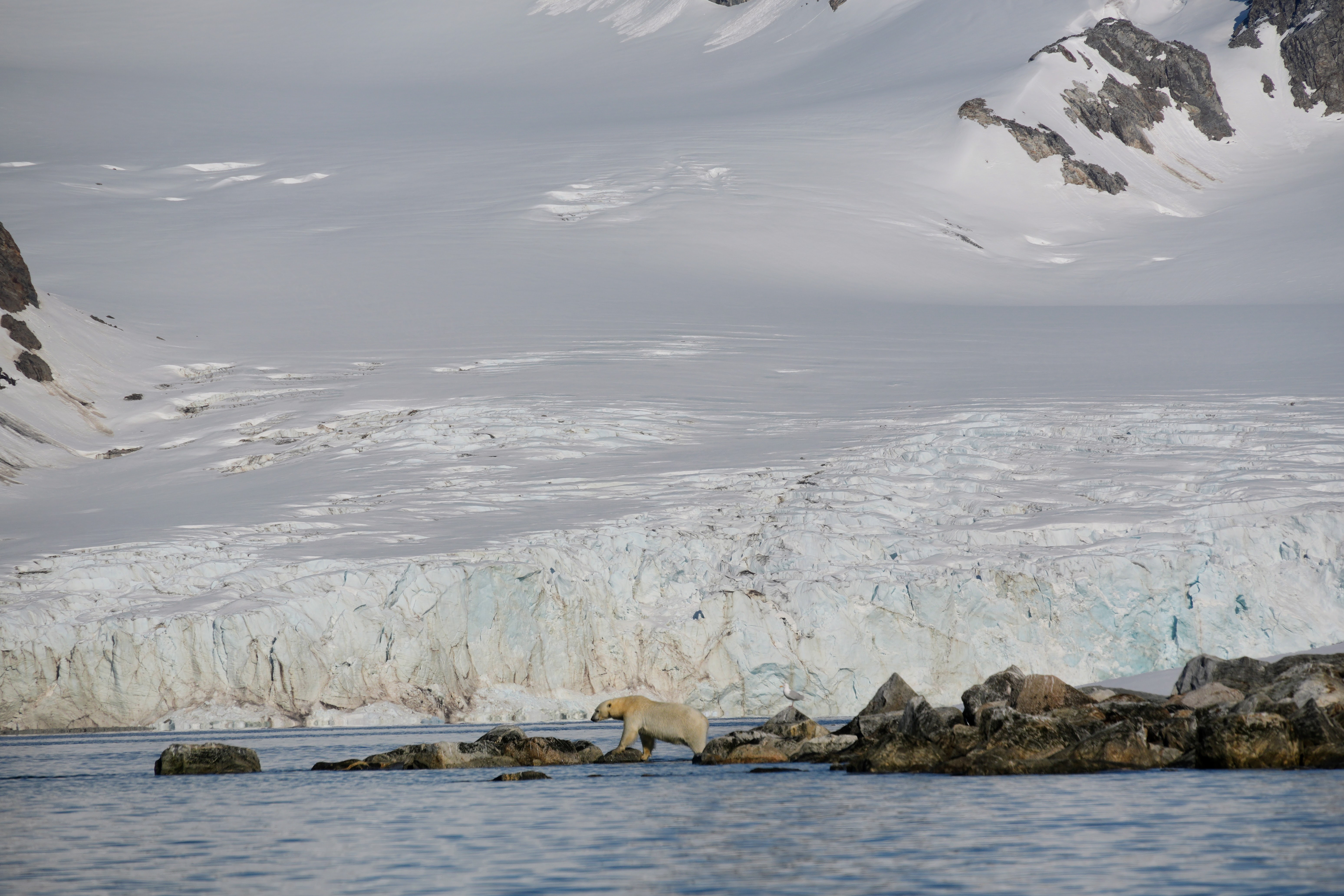 «Veníamos de una impresionante visita a un grupo de morsas con el telón de fondo de los glaciares y las montañas de Smeerenburg, cuando, durante un crucero en Zodiac explorando Danskøya, nuestro guía recibió un mensaje por radio: "¡Oso polar!"».