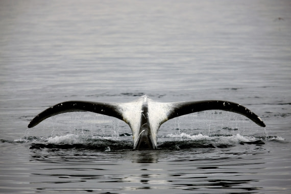 Another neat shot to get is when the whales dive. If you time it right you can get a shot right when the whale’s exposed tail makes its final flick before it submerges completely. You can get a nice spray of water droplets in the frame if you time it just right. Practice!