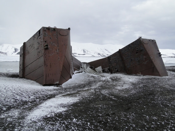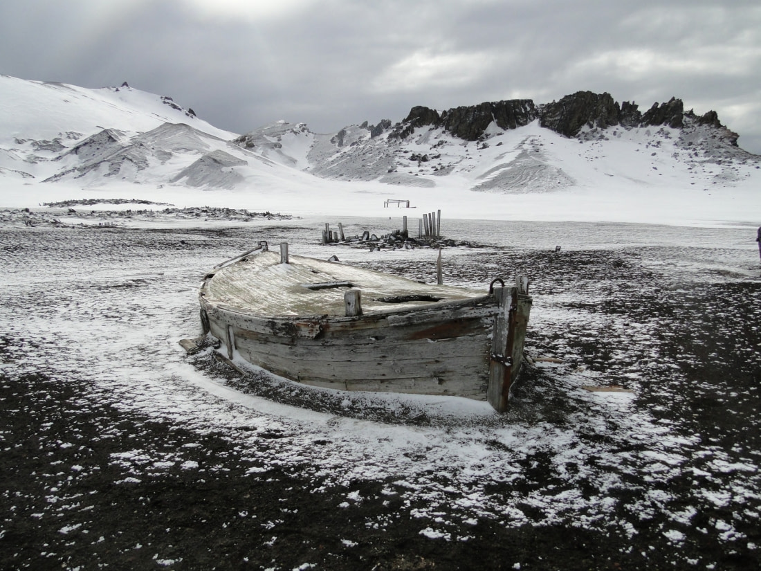 A Norwegian whaling company rendered oil out of carcasses that were left by whaling ships that were moored in the bay. Wooden water boats, derelict houses and bleached whale bones remind us of a not so peaceful period in Antarctic history.