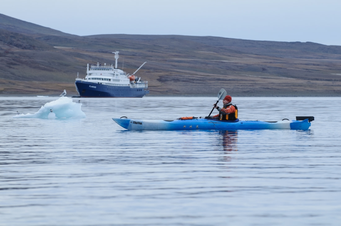 Accompanied by one of our expert kayak guides, you have the opportunity to leave land behind and venture over the watery domain of the Arctic marine life. Paddle between icebergs, skim along glaciers, and take in all the invigorating sights your eyes (and camera) can hold. Watching the wilderness pass from inside a kayak puts the Arctic experience in a whole new perspective.