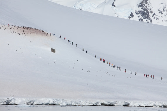 There are usually 1 to 3 different types of walks offered per landing ranging from a casual stroll to a challenging hike. In the Antarctic the longest hike takes about 2 hours while in the Arctic the longest hike can last a full day (we send you off with a packed lunch).