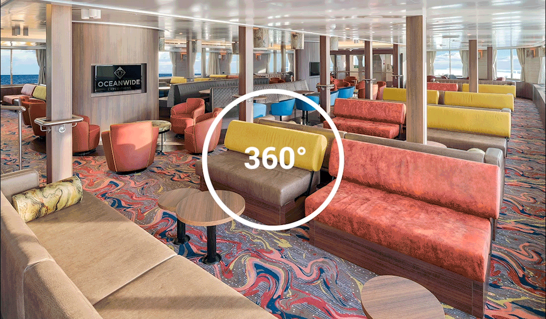 Please be aware that a small number of cabins may have a partially obstructed view due to the size of the windows and the design requirements of the ship. For example, some windows may be partly obstructed in the lower half by a gangway. The best view is always on the outer deck or the bridge. Hondius offers high-quality accommodation for 170 passengers in six grand suites with balconies (27 square meters, 291 square feet), eight junior suites (19 to 20 square meters, 205 to 215 square feet), eight superior cabins (20 to 21 square meters, 215 to 226 square feet), 11 twin deluxe cabins, (19 to 21 square meters, 205 to 226 square feet), 14 twin window cabins (12 to 14 square meters, 129 to 151 square feet) as well as 27 twin porthole cabins, two triple porthole cabins, and four quadruple porthole cabins that vary in size from 13 to 16 square meters, or 129 to 194 square feet. One deck consists of a large observation lounge and separate lecture room, which are reserved for a wide variety of interactive workshops, exhibitions, and performances particular to Hondius. Though elegantly designed in stylish mid-century modern décor, this vessel holds true to Oceanwide’s distinctive cozy and informal atmosphere.